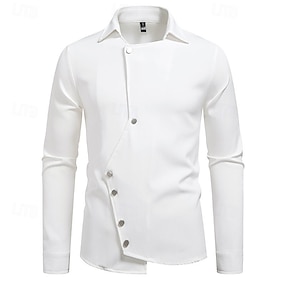 Voor heren Overhemd Zomer overhemd Normaal shirt Overhemd met knopen Zwart Wit Geel Blozend Roze Wijn Lange mouw Effen Revers Vakantie Hawaii Zak Kleding Polyester Modieus Casual Comfortabel