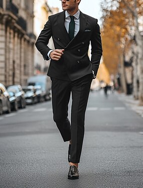 Heren Kostuums Bruiloft Licht Blauw Zwart Herfst Pak Punt Casual Effen Getailleerd 2-delige set Dubbele knoopssluiting zes knopen