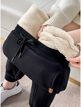 Dames Joggingbroeken Fleece broek Broek Modieus Streetwear Basic Volledige lengte Hoge taille Effen Trekkoord Zak Elastische taille Warm Zacht Comfortabel Rekbaar Buiten Vakantie Straat Donker Grijs