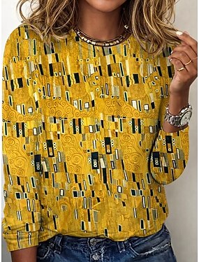 Dames T-shirt Afdrukken Grafisch Luipaard Geometrisch Vintage Modieus Stijlvol Lange mouw Strakke ronde hals Normale tops Dagelijks blauw Geel Lichtgroen Blozend Roze Marineblauw Zomer Lente Herfst