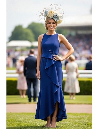 A-lijn Tot de enkel Feestjurk Cocktail jurk Derby-jurk Bruidsjurk Elegant Mouwloos Strakke ronde hals Formeel Bruiloft gast Stretchstof met Effen kleur