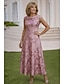 A-lijn Over de knie Feestjurk Cocktail jurk Bruiloft gast jurk Moeder van de bruid jurk Korte mouw Strakke ronde hals Elegant Bruiloft gast Verlovingsfeest Chiffon met Appliqués