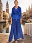 Strak kolom Broek 3-delig pak Tot de grond Moeder van de bruid jurk Mouwloos 3/4 mouw Halve mouw Col Nek boot V-hals Elegant Vintage Feest Bruiloft gast Feestdagen Bruiloft Chiffon Kant met Kant