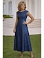 Strak kolom Tot de enkel Feestjurk Cocktail jurk Bruiloft gast jurk Moeder van de bruid jurk Halve mouw V-hals Elegant Bruiloft gast Formele avonden Stretchstof met Veer