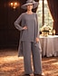 Broek 3-delig pak Broekpak Tot de grond Moeder van de bruid jurk Lange mouw Vierkante hals Elegant Vintage Eenvoudig Formeel Bruiloft gast Chiffon Satijn met Kant