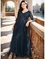A-lijn Trompet zeemeermin Strak kolom Tot de grond Bruiloft gast jurk Formele jurk Avondjurk Moeder van de bruid jurk 3/4 mouw Halve mouw V-hals Met sieraad Elegant Vintage Feest Formeel Bruiloft