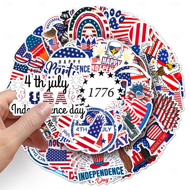 200 stuks 4 juli stickers, 4 verpakkingen van 50 patriottische waterdichte vinylstickers voor waterflessen en laptops, stickers met de Amerikaanse vlag voor Onafhankelijkheidsdag voor kinderen, #19917089