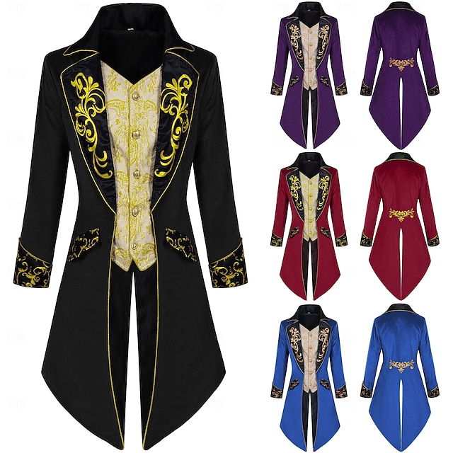 [Stof]: Deze prachtige jas is gemaakt van hoogwaardig polyester, wat zorgt voor een comfortabele micro-elastische pasvorm. De luxe satijnen revers benadrukken de rijke textuur en voegen een vleugje elegantie toe. [Pasvorm]: Met een slim-fit ontwerp is de jas op maat gemaakt om de taille te accentueren, waardoor een flatterende zandlopervorm ontstaat die zowel verfijnd als comfortabel is voor alle seizoenen. [Ontwerp Hoogtepunten]: De opvallende designelementen van de jas omvatten ingewikkelde borduursels op de revers, manchetten en voorpanelen, wat zorgt voor een koninklijke en weelderige uitstraling. De unieke asymmetrische zoom voegt een dramatische flair toe, terwijl de rijke kleurstellingen van zwart, rood, paars en blauw zorgen voor veelzijdigheid en stijl. [Occasies]: Ideaal voor uitvoeringen, Renaissance markten en LARP-evenementen, deze jas is perfect voor iedereen die op zoek is naar een kledingstuk dat vintage charme combineert met een theatrale touch. Het is ook geschikt voor Halloween, carnaval en gemaskerde feesten. [Maatbereik]: Beschikbaar in verschillende maten, waaronder S, M, L, XL, 2XL en 3XL, deze jas is afgestemd op een breed scala aan volwassenen, waardoor een perfecte pasvorm voor elk lichaamstype gegarandeerd is.