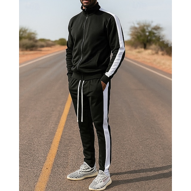 Geslacht:Voor heren,Categorie:Trainingspak,Trainingspaksets,Joggingpak,Kledingtype:Sportoutfits,Activiteit:Voor buiten,Reizen,Sportief,Gelegenheid:Sport,Sportkleding,Sportschool,Training,Seizoen:Herfst winter,Geschikt voor type:Normale pasvorm,Elasticiteit:Micro-elastisch,Functie:Warm,Stof:Polyester,Lengte mouw:Lange mouw,Ontwerp:Volledige ritssluiting,Halslijn:Opstaand,Patroon:Kleurenblok,