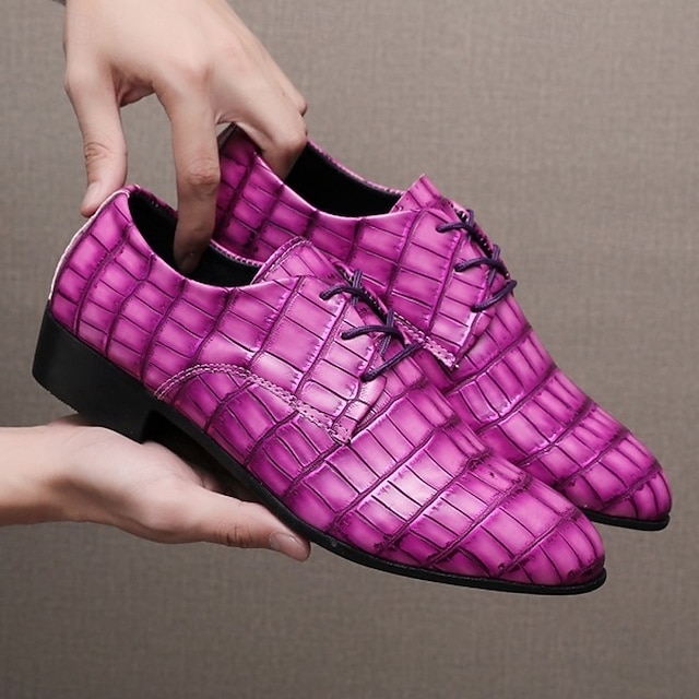 Herenschoenen van imitatieleer in paars met krokodillenprint, stijlvol en uniek, ideaal voor formele gelegenheden en avondkleding.#14394990