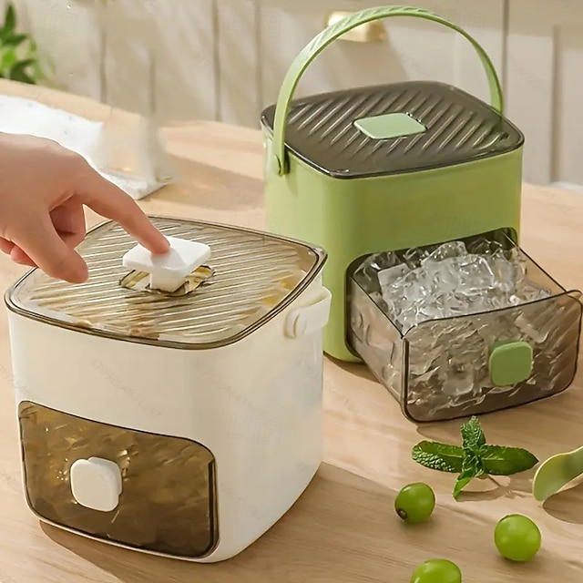[Product Title]: 48 IJsblokjesmaker met Gemakkelijke Drukdeksel - Grote Capaciteit Dubbele Laag Ontwerp Voedsel Veilige Plastic Opslagbak Geschikt voor Vriezen - Geweldig voor Whiskey en Cocktails Essentiele Keuken Gadgets [Stof/Materiaal]: Gemaakt van hoogwaardig, duurzaam voedselveilig plastic, deze ijsblokjesmaker zorgt voor duurzaamheid en consistente prestaties. Het robuuste materiaal behoudt zijn integriteit, zelfs na langdurig gebruik en blootstelling aan lage temperaturen. [Aanpassing/Vorm]: Het dubbele ontwerp van deze ijsblokjesmaker is kubusvormig, waardoor je de opslagruimte van je vriezer optimaliseert. De compacte maar ruime structuur maakt efficiënt stapelen mogelijk en gemakkelijk integreren in elke keuken of baropstelling. [Ontwerp Hoogtepunten]: De ijsblokjesmaker heeft een moderne esthetiek, beschikbaar in zowel een frisse, lichte groene kleur als een klassieke witte, elk benadrukt door een rookgetint deksel dat een elegante touch toevoegt. Het gemakkelijke drukdeksel bevat een drukknopmechanisme, dat moeiteloze ijsdispensering biedt, terwijl de handige draaghandgreep en transparante lade praktische opslag- en transportoplossingen bieden. [Occasies]: Perfect voor verschillende settings, deze veelzijdige ijsblokjesmaker is ideaal voor feesten, dagelijks gebruik en zowel informele als formele bijeenkomsten. Of je nu een feestelijke viering organiseert of geniet van een rustige avond met een verfrissend drankje, deze ijsblokjesmaker is een essentiële keuken gadget die elke gelegenheid verbetert. [Grootte Opmerking]: Het product is ontworpen om een grote capaciteit ijsblokjes te houden, geschikt voor het maken van talrijke cocktails of het koelen van dranken voor feesten en dagelijks gebruik. Het past comfortabel in standaard vriesruimtes, waardoor het een praktische aanvulling is voor elke keuken.