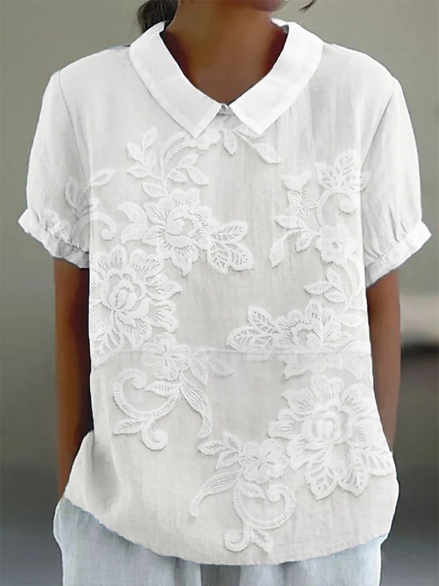 Dames Overhemd Imitatie katoenlinnen Knop Afdrukken Bloemig Dagelijks Casual Korte mouw Overhemdkraag Normale tops Dagelijks Feestdagen blauw Wit Blozend Roze Groen Khaki Zomer Lente #17587249