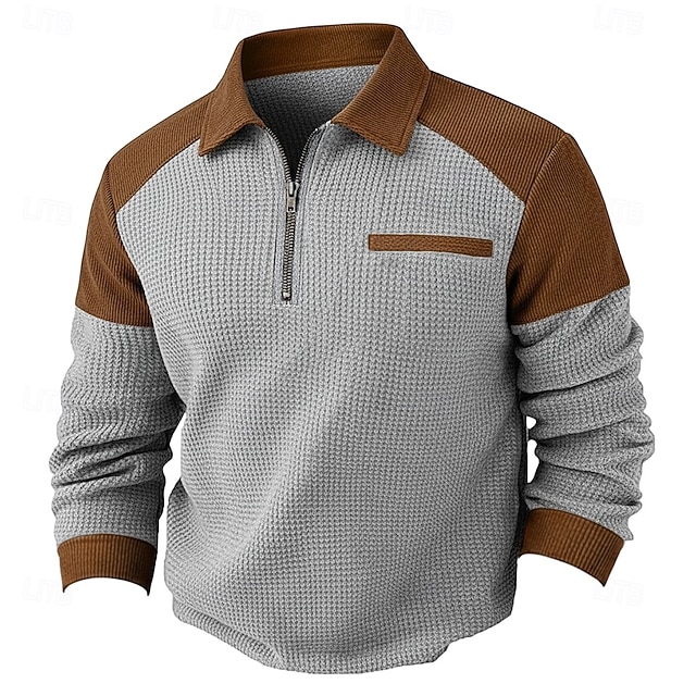 Voor heren Wafel T-shirt T-shirt Wafel Henley-shirt Lange mouw Polo kraag Stoppen Kwart ritssluiting Herfst Herfst winter Effen Kleur Met Textuur Traditioneel / Vintage Casual Vetoketju Kleurenblok #17896001