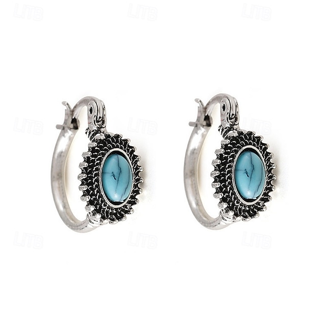 Boho zilveren creolen met turquoise edelsteen – vintage tribale sieraden voor vrouwen#17944581