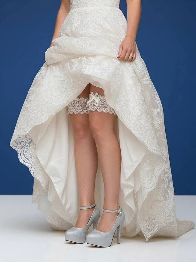 Zilveren plateauhakken met enkelbandje en parelbedel – elegante bruidsschoenen voor avond of glamoureuze bruiloft#6790846