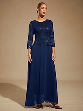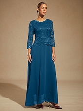Dames Maxi-jurk Chiffon jurk Elegant Bruiloft gast Avond Feest Normale pasvorm Effen Kleur 3/4 mouw Strakke ronde hals Smaragdgroen Lente Herfst Winter #19989103