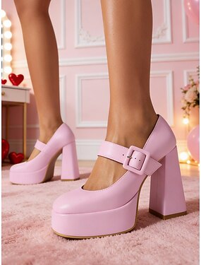 dames platform imitatiesuède mary jane pumps - dikke hoge hak schoenen met strass gesp voor formele gelegenheden