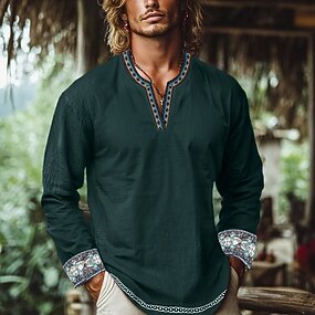 Voor heren Overhemd Linnen overhemd Zomer overhemd Strand hemd Overhemd met knopen Overhemden zonder broek Effen Casual Dagelijks Zwart Wit Lichtgroen Blozend Roze Lange mouw Strijkijzer Zomer Lente