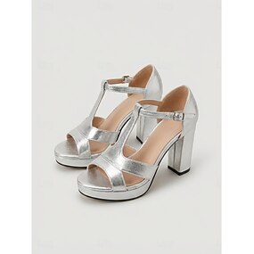 Damessandalen met zilveren plateauzool en blokhak, elegante schoenen met T-bandje en dikke hak voor cocktailparty's en gala's. &avondevenementen