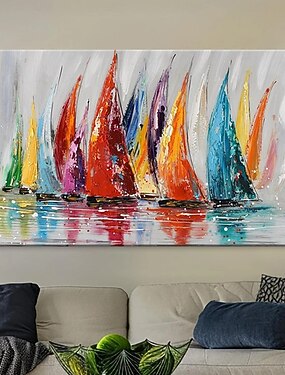 grote handgeschilderde kunst aan de muur zeilboot partij olieverf handgemaakt zeegezicht textuur schilderij kunst kleurrijke boot foto muur kunst huisdecoratie decor opgerold canvas geen frame