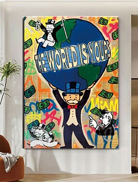 handgemaakt handgeschilderd olieverfschilderij muur modern abstract schilderij alec monopoly straatkunst geld canvas schilderij woondecoratie decor opgerold canvas geen frame niet uitgerekt