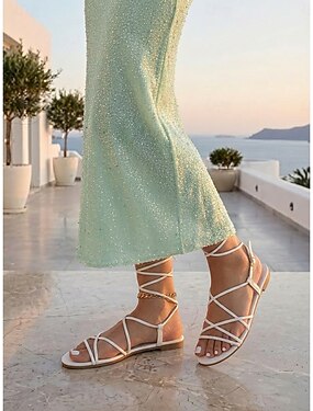 Witte platte sandalen met bandjes voor dames, comfortabel voor op vakantie &resort avondschoenen