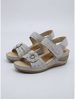 Comfortabele glitter wedge sandalen voor dames – zilverkleurige schoenen met pailletten en bloemendetails, perfect voor zomerfeestjes, casual uitjes en vakantiekleding.