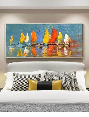 olieverfschilderij handgemaakte handgeschilderde kunst aan de muur landschap boot abstract huisdecoratie decor uitgerekt frame klaar om op te hangen