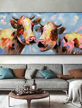 handgemaakte handgeschilderde olieverf muur kunst moderne abstracte dier koe foto's woondecoratie decor gerold canvas geen frame niet uitgerekt