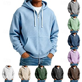 Voor heren Trui met capuchon Hoodie met volledige rits Wafel Hoodies Abrikoos Zwart Wit Lichtgroen Leger Groen Capuchon Effen Met Textuur Sport & Outdoor Casual Dagelijks Streetwear Stoer Sportkleding