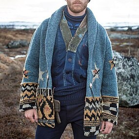 Man Trui Vest Trui Trui Jas Dik breien Normaal Jacquard Strijkijzer Alledaagse kleding Kleding Herfst winter blauw M L XL