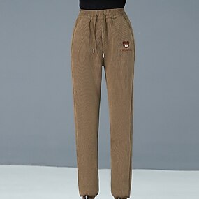 Dames Katoenlinnen Zomerbroek Vakantie Streetwear Basic Volledige lengte Middelhoge taille Effen Zak Elastische tailleband Comfortabel Comfort Inelastisch Dagelijks Buiten Straat Rijst Wit Zwart