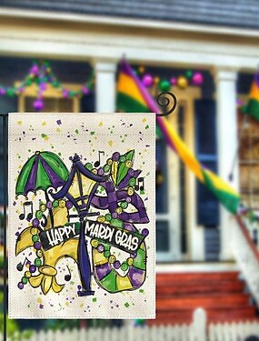 Set van 3 Mardi Gras tuinvlaggen 30 x 45 cm, dubbelzijdig, paars, groen en goud met fleur-de-lis, voor in de tuin, buiten, gazondecoratie, vrolijke Vette Dinsdag carnavalsdecoratie