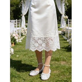 Witte kanten flats voor dames met strik- en bloemenversieringen – elegante balletschoenen voor bruiloftsgasten op het gazon, lente-/zomergelegenheden en buitenevenementen