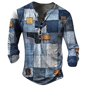 Voor heren Grafisch Lapwerk Henley-shirt Lange mouw 3D-afdrukken Modieus Dagelijks Casual Casual Feestdagen Uitgaan Lente & Herfst blauw Licht Blauw Koningsblauw Donkerblauw Henley Henley-T-shirt