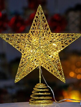Kerstboomtopper met led-licht, glitterijzeren 3D-vijfpuntige ster, hangende boomdecoratie, feestelijke kerstversiering voor op tafel, huisdecoratie cadeau