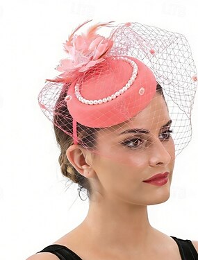 fascinators Veer Netto Bruiloft Verjaardag Vintage leuke Style Met Veer Pareldetails Helm Hoofddeksels