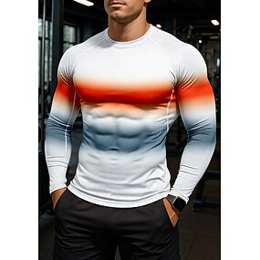 Voor heren Kleurgradatie Compressieshirt Hardloopshirt Lente Herfst 3D-afdrukken Lange mouw Sneldrogend Compressie Krachtflex Vochtregelerend Ademend Sportschooltraining Actieve training Hardlopen