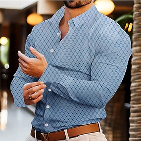 Voor heren Geometrisch Kleurenblok Lapwerk Overhemd Overhemd met knopen Lange mouw Mode-casual Buiten Dagelijks gebruik Lente Herfst Strijkijzer 3D-afdrukken shirts met kraag blauw Paars Groen Khaki