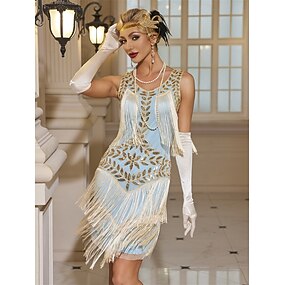 Set Roaring jaren '20 Jaren 1920 Tot de knie Jurken Flapper jurk Outfits met accessoires Mouwloos The Great Gatsby Charleston Grote maten Kwastje V-hals Kostuum Dames Carnaval Nieuwjaar Maskerade