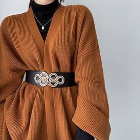brede elastische tailleband voor dames met vintage metalen gesp – modieuze stretchriem voor jurken, tunieken en blouses – verkrijgbaar in zwart, rood en bruin