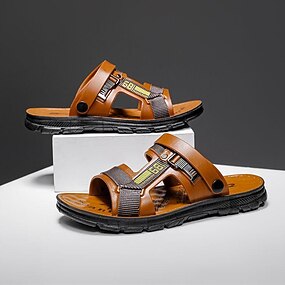 Herensandalen met open neus, gemaakt van bruin imitatieleer, comfortabele zomerse casual schoenen voor strand en dagelijks gebruik.