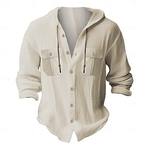 Voor heren Overhemd Wit katoenen overhemd Normaal shirt Overhemd met knopen Katoenen shirt Effen Vakantie Straat Zwart Wit Donker Marine blauw Lange mouw Capuchon Lente Kleding Zak