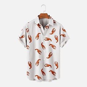 Voor heren dier Tropisch Vissen Overhemd Hawaiiaans overhemd Aloha-shirt Korte Mouw Overhemd Strijkijzer Tropisch Modieus Hawaii Straat Casual Hawaii Rood blauw Grijs S M L