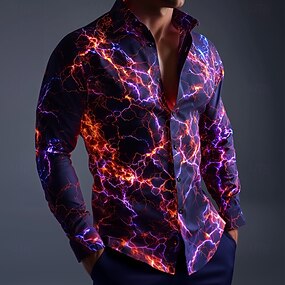 Voor heren 3D Print Bliksem Vlam Overhemd Overhemd met knopen Casual overhemd Lange mouw Mode-casual Streetwear Vakantie Lente Herfst Strijkijzer 3D-afdrukken shirts met kraag Paars Donker Paars