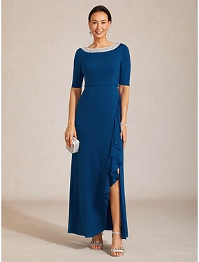 Dames Maxi-jurk Schede jurk Elegant Effen Kleur Halve mouw Boothals Marineblauw