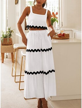 Dames Maxi-jurk Witte jurk Elegant Modieus Modern Buiten Vakantie Uitgaan Normale pasvorm Effen Mouwloos Vierkante hals Wit Zomer Lente