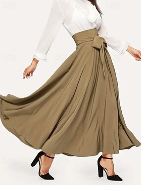 Dames Elegant Vintage Maxi Hoge taille Rokken Rekbaar Zwart Lente