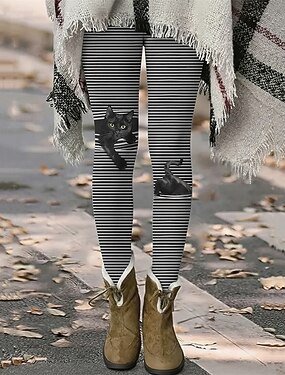 Dames Broeken Leggings Gezellige leggings Streetwear Casual Volledige lengte Hoge taille Kat Gestreept Elastische taille Afdrukken Ademend Comfortabel Rekbaar Vakantie Straat Alledaagse kleding Zwart