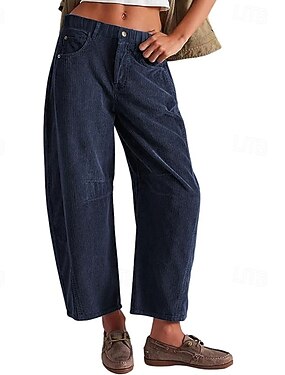 Dames Corduroybroek broek Recht Streetwear Casual Volledige lengte Natuurlijk Effen Siernagel Vetoketju Comfortabel Straat Feestdagen Alledaagse kleding Zwart Blozend Roze donkergrijs Groen Herfst